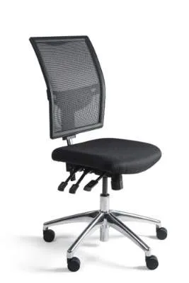 Bureaustoel zonder armleuning met netrug. Zitting in zwarte stof. Deze stoel zonder armleuningen en mesh rug wordt binnen 1 week geleverd.
