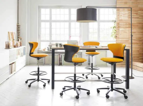 Scrum stoelen van Sedus, model Turn Around. hoogte instelbaar om in agile methodiek regelmatig van houding te veranderen tijdens scrummen.