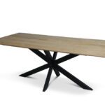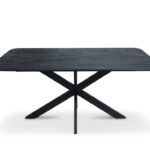 De tafel rust op stevige spinnepoten, die zijn gemaakt van gepoedercoat staal. Deze elegante rechthoekige poten hebben een afmeting van 8×4 cm en zijn uitgevoerd in een diepe zwarte kleur. De combinatie van het stoere staal met het warme mangohout zorgt voor een interessant contrast dat de aandacht trekt en de tafel zijn moderne uitstraling geeft. Of je nu op zoek bent naar een vergadertafel voor een zakelijke omgeving, een creatieve studio of een stijlvol thuiskantoor, deze vergadertafels met spinnepoten bieden de perfecte combinatie van stijl en functionaliteit.